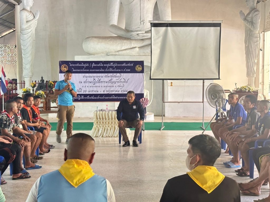 พ.ต.อ.พลภัทร ธรรมะสนอง ผกก.สภ.นายายอาม เป็นวิทยากรอบรม ผู้เข้ารับการบำบัดในโครงการช่วยเหลือผู้เสพ/ผู้ติดยาเสพติด ของศูนย์ฟื้นฟูสภาพทางสังคมจังหวัด ณ สถานปฏิบัติธรรมปัญญาประทีป ต.นายายอาม อ.นายายอาม จ.จันทบุรี
