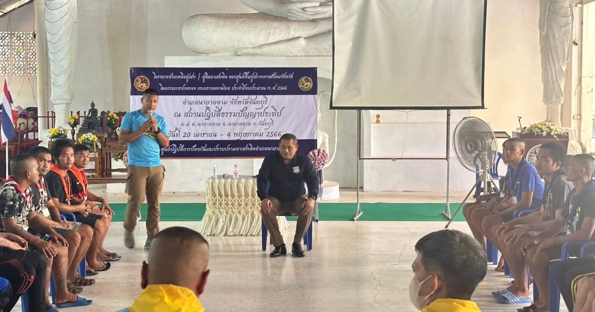 พ.ต.อ.พลภัทร ธรรมะสนอง ผกก.สภ.นายายอาม เป็นวิทยากรอบรม ผู้เข้ารับการบำบัดในโครงการช่วยเหลือผู้เสพ/ผู้ติดยาเสพติด ของศูนย์ฟื้นฟูสภาพทางสังคมจังหวัด ณ สถานปฏิบัติธรรมปัญญาประทีป ต.นายายอาม อ.นายายอาม จ.จันทบุรี