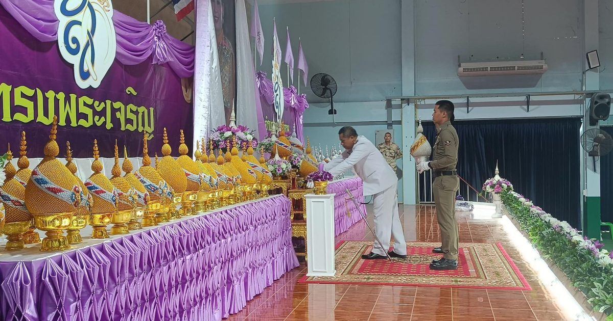 พ.ต.ท.สมภพ สุวรรณโชติ รอง ผกก.ป.สภ.นายายอาม พร้อมด้วยข้าราชการตำรวจ สภ.นายายอาม ร่วมพิธีถวายพระพร วางพานพุ่ม เนื่องในวันเฉลิมพระชนมพรรษาสมเด็จพระนางเจ้าสุทิดา พัชรสุธาพิมลลักษณ พระบรมราชินี ณ หอประชุมที่ว่าการอำเภอนายายอาม