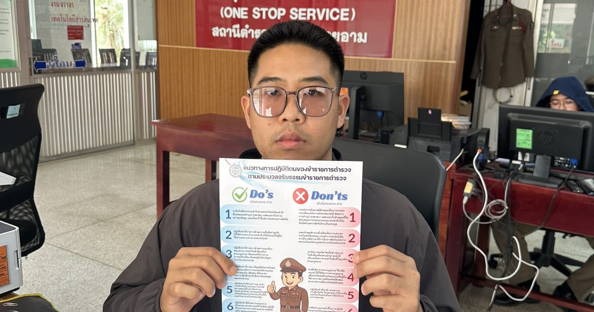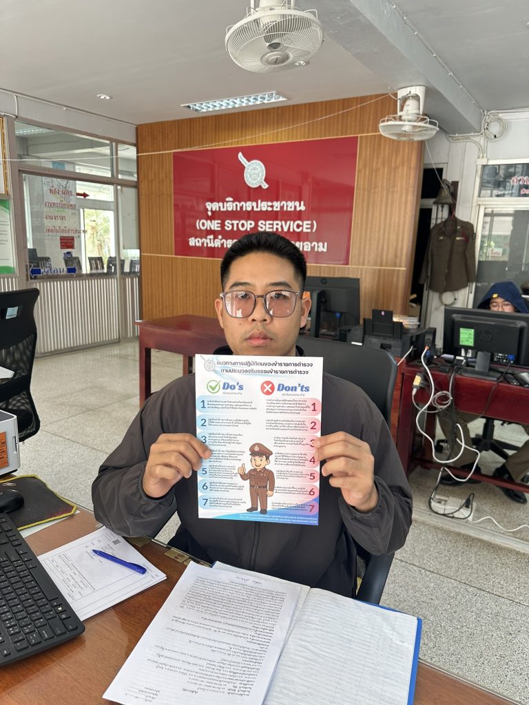 Do & Don’t ประมวลจริยธรรม 1 กุมภาพันธ์ 2569 โดย admin / ไม่มีหมวดหมู่,ข่าวประชาสัมพันธ์ วันที่ 1 กุมภาพันธ์ 2569 พ.ต.อ.พิมุข นาคขำพันธ์ ผกก.สภ.นายายอาม ให้มีการประชาสัมพันธ์ แนวทางปฏิบัติตนของข้าราชการตำรวจตามประมวลจริยธรรมข้าราชการตำรวจ ( Do’s and Don’ts) และให้ข้าราชการตำรวจ สภ.นายายอาม ปฏิบัติตามอย่างเคร่งครัด FacebookFacebookXXLINELine