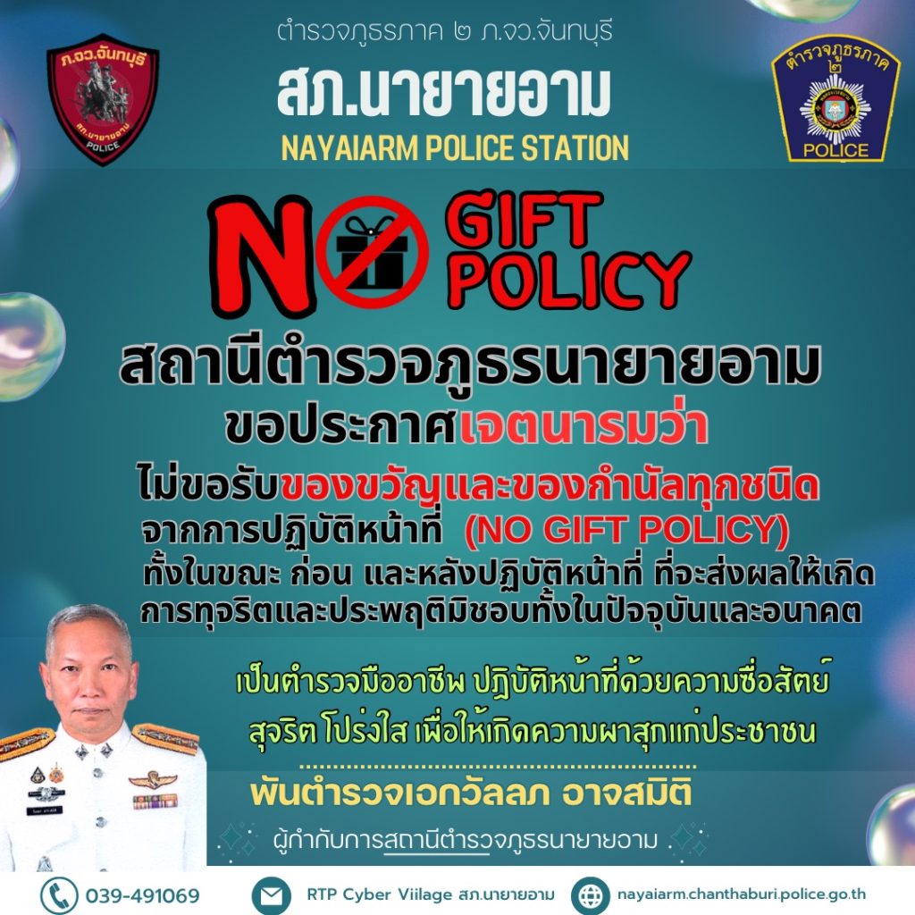 Anouncement of Nayaiarm Police station Subject Anti-Bribery and not accepting gifts or any other benefits (No Gift policy) 2025