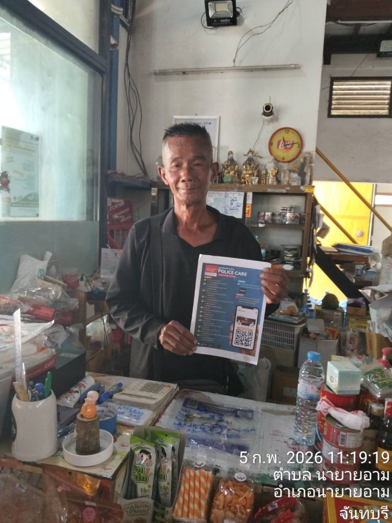 PoliceCare สภ.นายายอาม 4 มกราคม 2569 โดย admin / ไม่มีหมวดหมู่,ข่าวกิจกรรม,ไม่มีหมวดหมู่,ข่าวประชาสัมพันธ์,ไม่มีหมวดหมู่ วันที่ 4 มกราคม 2569 พ.ต.อ.พิมุข นาคขำพันธ์ ผกก.สภ.นายายอาม ให้ข้าราชการตำรวจประชาสัมพันธ์เกี่ยวกับแอปพลิเคชั่น PoliceCare ให้แก่ประชาชน เพื่อให้ประชาชนเข้าถึง สะดวก รวดเร็วในการติดต่อราชการ ทั้งนี้ข้าราชการตำรวจ สภ.นายายอาม ได้ปฏิบัติการประชาสัมพันธ์อย่างต่อเนื่องให้ประชาชนได้เข้าถึง FacebookFacebookXXLINELine
